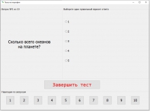Разработка тестов по географии на языке программирования C++ Builder XE10 с динамическим формированием вопросов. Данная программа тестов поддерживает один правильный вариант ответа на каждый вопрос, а количество вопросов не ограничено.