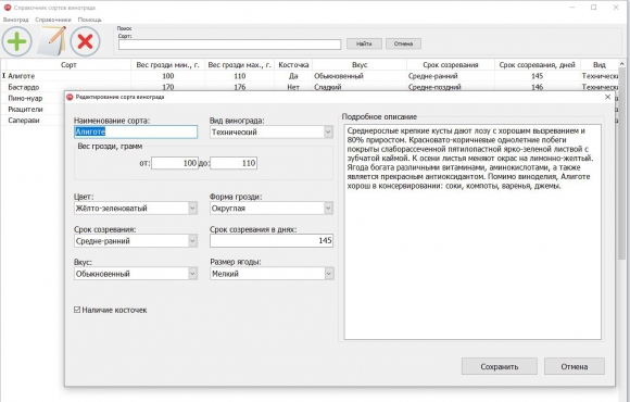 Справочник сортов винограда