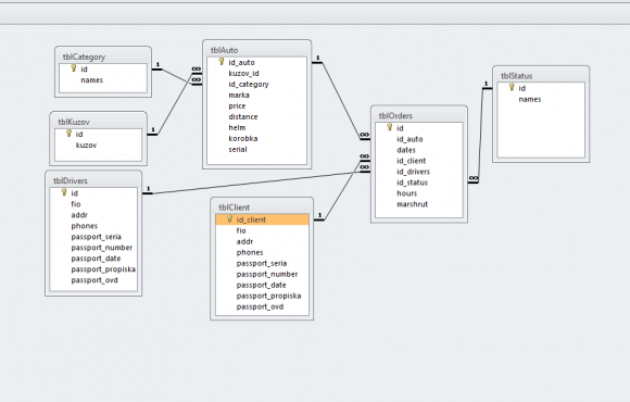 У транспортной компании имеется парк автомобильных средств и свой водительский штат. Имеющийся автотранспорт необходимо сдавать в аренду клиентам, которые оставляют заявки через диспетчера организации. Для аренды предварительно заполняется специальная форма, в которой нужно выбрать необходимую технику, указать сведения о клиенте, сведения о водителе, который будет выполнять заказ по перевозке груза, сведения о маршруте, дата аренды и срок аренды в часах.