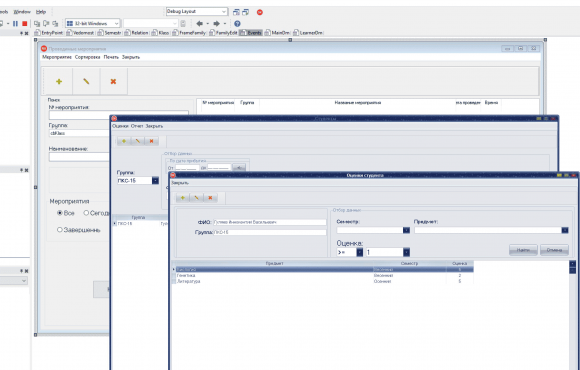 Готовый проект в Delphi XE10 на тему автоматизации работы куратора в техникуме, университете, колледже или в каком-либо другом учебном заведении. Программа предназначена для использования классным руководителем в однопользовательском режиме работы.