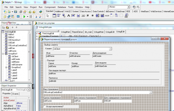 Автоматизация страховых услуг в Delphi 7 c базой данных в Access