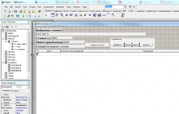 Автоматизированная система обслуживания вычислительной техники в Delphi