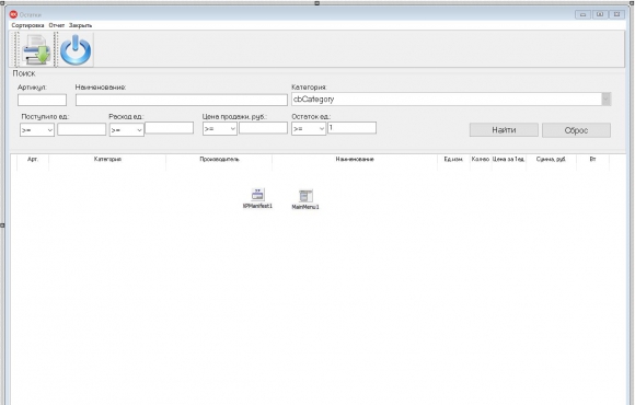 Во всех основных модулях имеется функция сортировки и фильтрации (поиска) по определенным полям таблиц. А в модулях ассортимент, поставки, остатки и заказы можно производить печать на бумажный носитель, сделать предварительный просмотр формируемого документа и экспортировать документ в формат PDF и CSV.