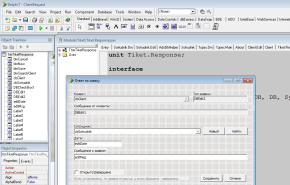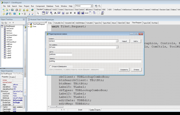 База данных автоматизации обработки заявок клиентов в Delphi 7