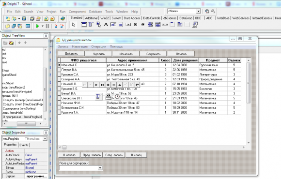 База данных итоговых оценок учащихся школы в Delphi 7