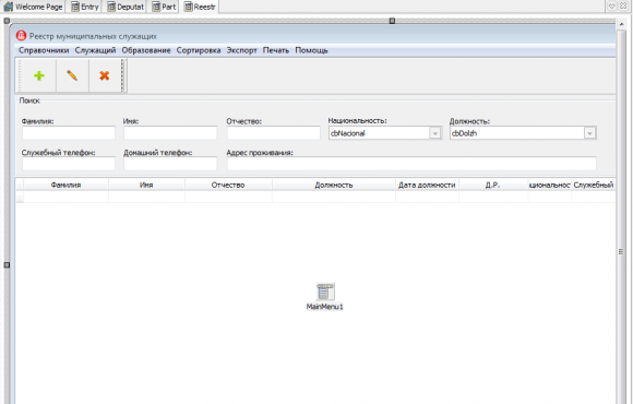 Готовая база данных в Delphi на тему учета сотрудников администрации. Проект программы состоит из двух модулей в одном ведется учет депутатов, а в другом - реестр муниципальных служащих.