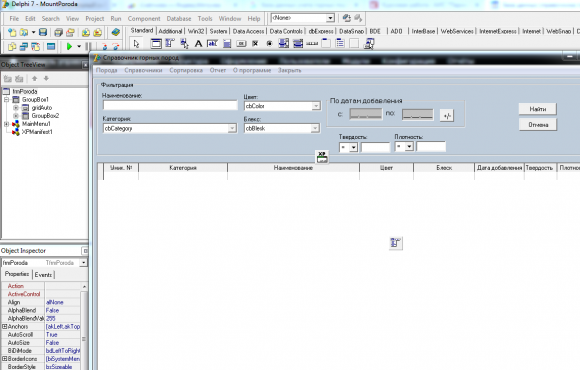 Для классификации горных пород и минералов выполнена разработка программного продукта в Delphi 7 на базе технологии ADO и с применением СУБД Access.
