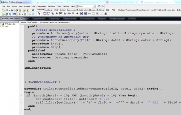 - Вывод найденных данных. Для этого была создана специальная форма с компонентом QReport для генерации отчета (По умолчанию он отключен, поэтому его нужно подключить, это описано в статье - Установка QReport в Delphi 7).
