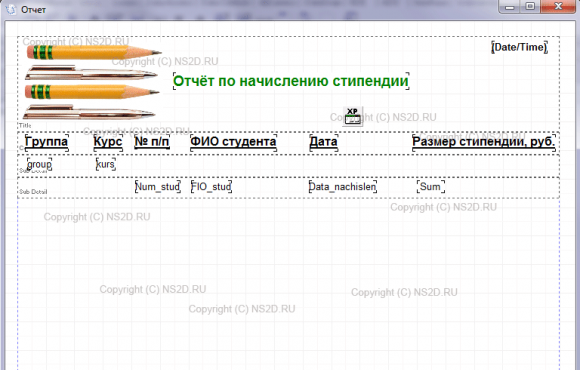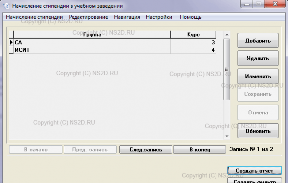Разрабатываемая программа предназначена для начисления стипендии учащимся учебного заведения. В программе можно редактировать данные групп, курсов, ФИО студентов, даты начислений и суммы стипендии. Также можно выполнить выборку по группе или курсу с указанием критерия фильтрации. Отфильтрованные данные можно вывести на печать для последующего хранения документов в бумажном виде. Для хранения данных используется СУБД Access, в которой содержится 2 таблицы для работы с информацией. Первая таблица используется для хранения групп и курсов, а вторая для хранения данных о студентах и начислений стипендий.