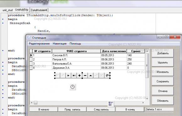 Проект на Borland Delphi 7 для начисления стипендии в учебном заведении является улучшенной версией программы для начисления стипендии с использованием СУБД InterBase.