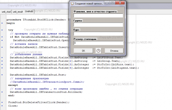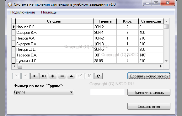 Начисление стипендии в учебном заведении с СУБД InterBase