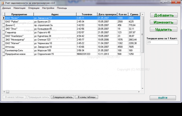 В программе можно выполнять добавление, редактирование и удаление записей, также доступна сортировка фильтрация и вывод отчета. В качестве СУБД использована Access с применением технологии ADO для доступа к данным. Программа по учету задолженности за электричество рекомендуется для написания какой-либо работы по технологии программирования. Данный проект на Delphi 7 также подойдет к теме разработка базы данных учета задолженности за электроэнергию.