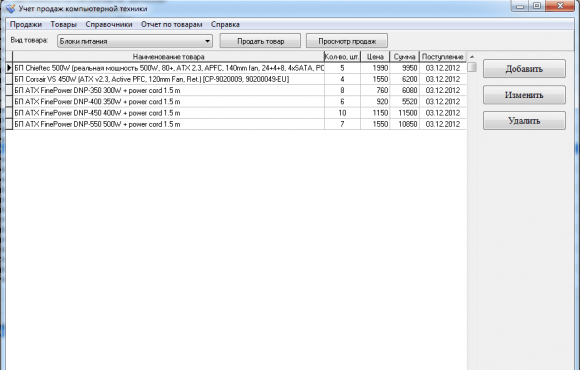 Разработка программы учета продаж компьютерной техники