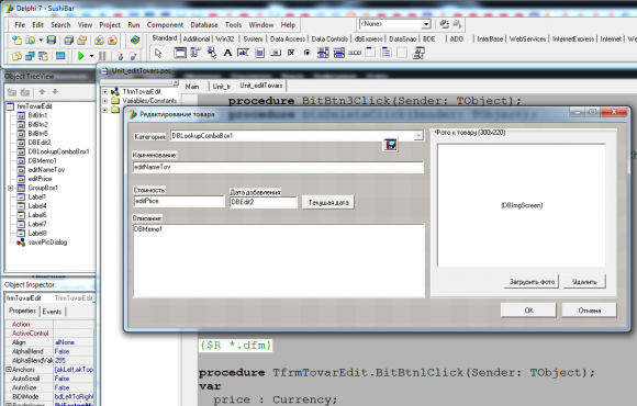 БД учета заказов ресторана японской кухни в Delphi 7