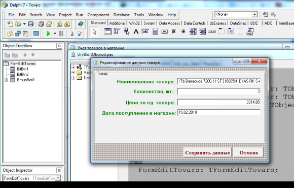 Delphi учет компьютерных товаров в магазине