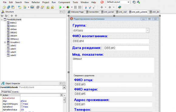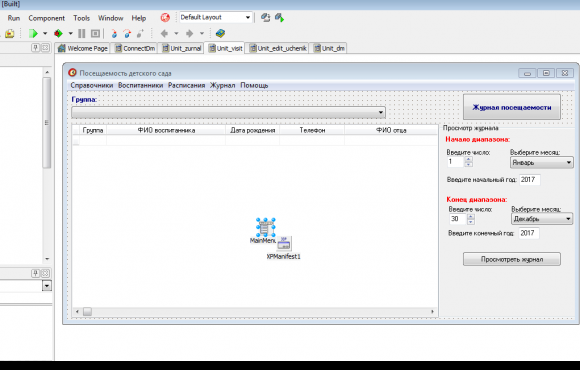 Электронный журнал посещаемости воспитанников детского сада в Delphi XE2