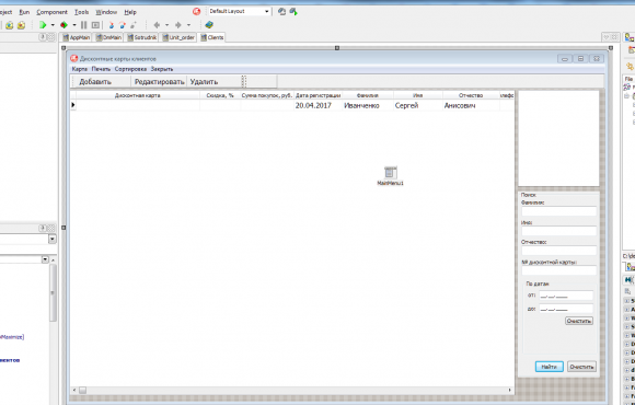 Готовый проект на тему управление дисконтными картами клиентов в Delphi XE2
