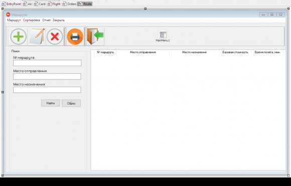 • Маршруты: номер маршрута, аэропорт вылета, аэропорт назначения, цена билета на маршрут, продолжительность полета в минутах;