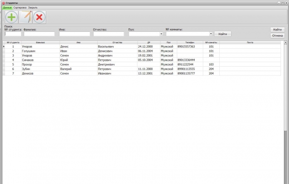 общежитие, ИС, C++ Builder, база данных, запрос, студенты