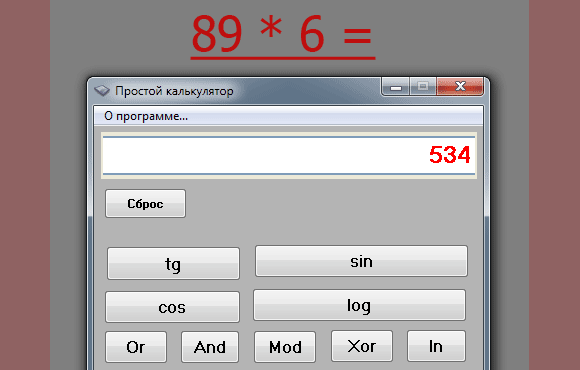 Простой калькулятор на Delphi 7 для выполнения математических операций сложения, умножения, вычитания, деления и прочих операций. Данный проект идеально подойдет для написания несложной работы по программированию.