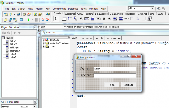 Готовый проект в Delphi 7, скомпилированная программа и файл password.txt для авторизации