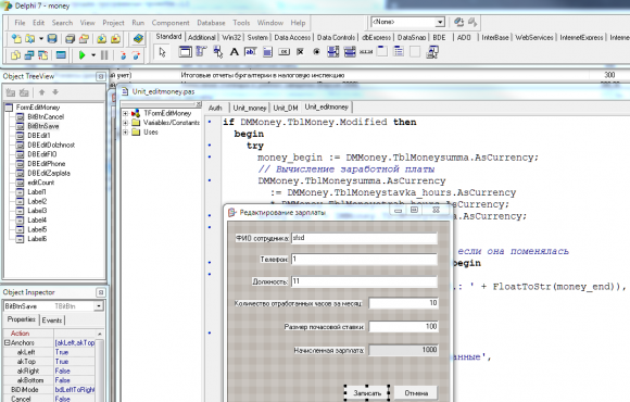 Программа расчета зарплаты в Delphi 7 с авторизацией