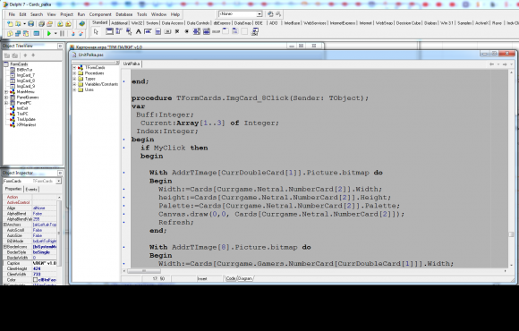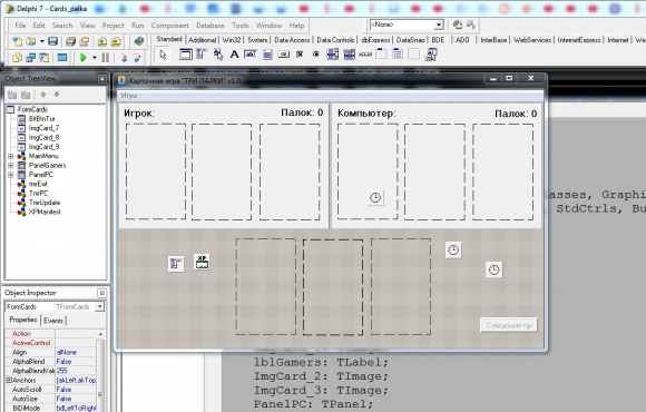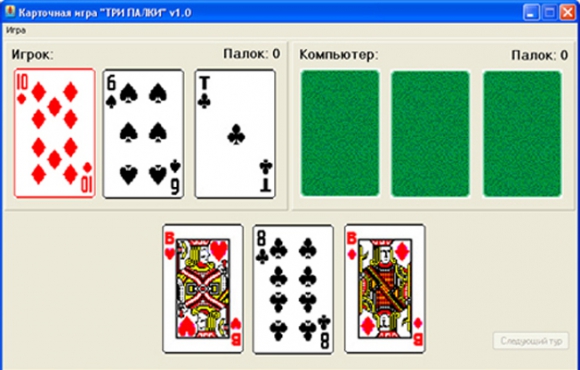 Готовая карточная игра в Delphi 7 с исходным кодом для сдачи работы преподавателю по технологии программирования. В данном проекте была смоделирована игра "При палки". Суть, которой в том, чтобы не набрать три палки, так как это количество приводит к проигрышу.