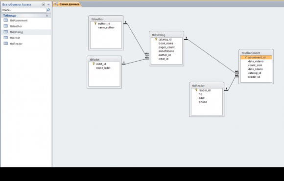 Данная реализация проекта является улучшенным вариантом проекта Электронный каталог библиотеки на Delphi XE2. В этой версии в отличае от предыдущей добавлено несколько дополнительных Access таблиц, для ведения абониманта читателей (таблица читателей и абонимента).