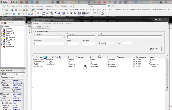 Готовая база данных контактов разработана в интегрированной среде разработки Delphi 7 для курсовой работы по технологии разработки программного обеспечения. В состав реализованного проекта входит таблица улиц и контактов.