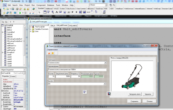 Разработка программы для курсовой делфи на тему учета инструментов в магазине. Готовая база данных состоит из 3 таблиц: категории, единицы измерения и товары с инструментам. База данных инструментов является готовым проектом в Delphi 7 для написания курсовой работы по учету различных инструментов: газонокосилки, бензоинструмент. После оплаты будет предоставлен полностью проект в Delphi 7.