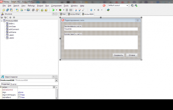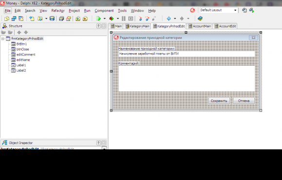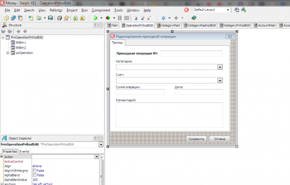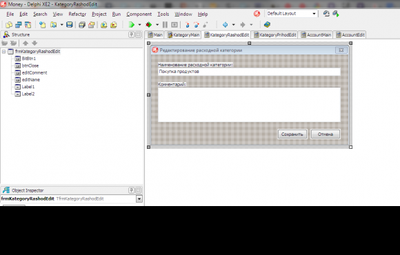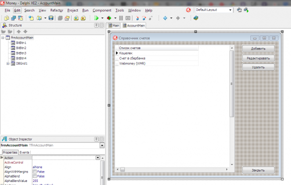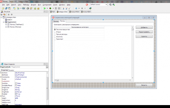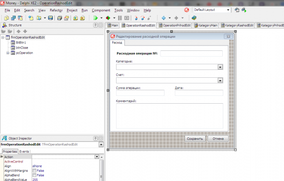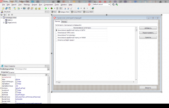 Разработка проекта учета денежных средств в Delphi XE2 для лабораторной работы по программированию
