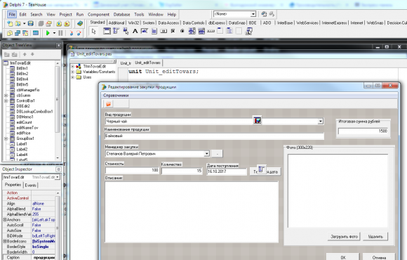Разработка программы учета чайной продукции в Delphi 7