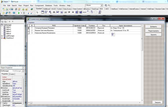 В состав проекта входит 10 Unit модулей, в каждом из которых (кроме модуля данных) размещены элементы управления для работы с таблицами базы данных.