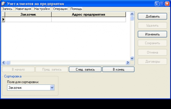 Для доступа к данным таблиц используется технология ADO, а для редактирования данных по клиентам и их договорам используются компоненты TDBGrid. В разрабатываемом приложении используется 5 форм, имеется возможность выполнять сортировку (по полю "Заказчик" и "Адрес предприятия") по возрастанию и убыванию, фильтрацию по аналогичным полям как в сортировке и создание отчетов по учтенным клиентам и их договорах.