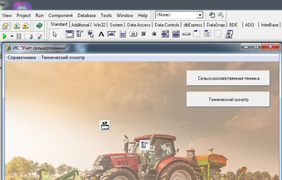 Готовый проект учебной базы данных по программированию на тему система учета и обслуживания сельхозтехники. Данная программа предназначена для автоматизации деятельности предприятия. Программа дает возможность производить учет имеющейся сельскохозяйственной техники. Интерфейс приложения был спроектирован с применением среды разработки Delphi 7, а для обеспечения хранения данных применяется реляционная СУБД Access. В спроектированном приложении имеется 10 форм для взаимодействия с пользователем. База данных состоит из 7 связных между собой таблиц.