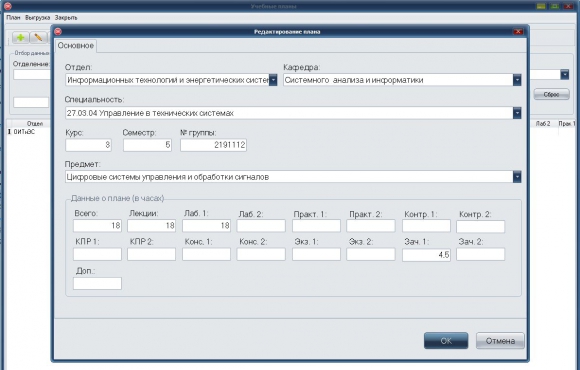 Готовый проект по разработке программы для работы с учебными планами в учебной организации. В программе ведется учет отделов, кафедр, курсов, семестров и дисциплин. Разработанный интерфейс пользователя выполнен в среде программирования Delphi XE10.1 Berlin, а для хранения данных об учебных планах используется реляционная СУБД Access.