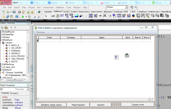 Учет и анализ спортивных соревнований Access + Delphi 7 (Вариант реализации 1)