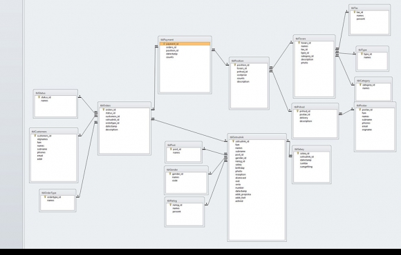 - Создано 17 таблиц в Access для хранения данных.