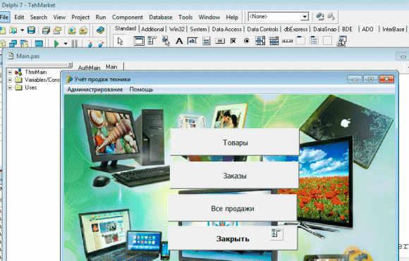 Проект по базам данных в Delphi 7 на тему учета продаж электронной техники. В состав, спроектированной БД для приложения, входят четыре связные таблицы с отношением один ко многим. Имеется таблица сотрудников, используемая для формы авторизации и при оформлении заказов. Также таблица для хранения информации по товарам с электронной техникой. А также таблица для хранения сведений о купленных товарах в магазине электронной техники.