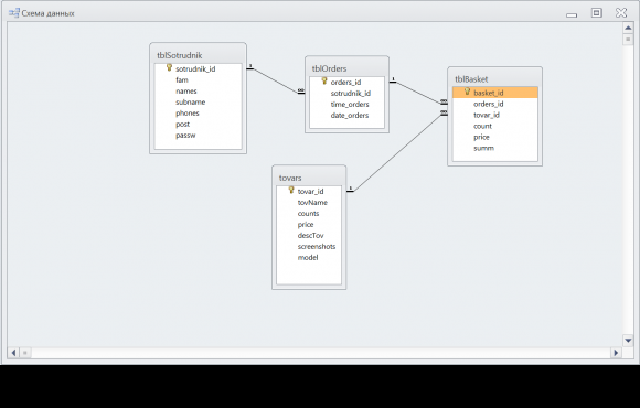 В качестве среды разработки используется Delphi 7, для хранения данных о компьютерах применена СУБД Access. Всего имеется 7 таблиц: категории, товары, пол, клиенты, сотрудники, заказы и корзина.