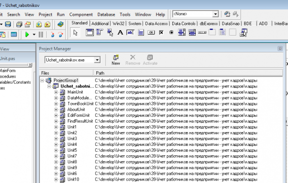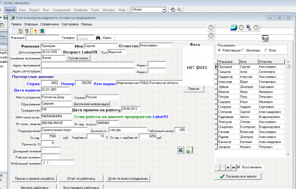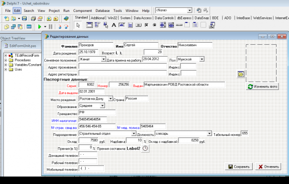 Учет работников отдела кадров на предприятии в Delphi 7
