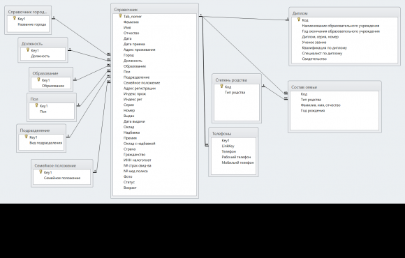 Готовый прикладной проект на Delphi 7 по учету сотрудников в отделе кадров предприятия с реляционной СУБД для создания АРМ менеджера по работе с персоналом. База данных программы состоит из множества связанных таблиц для хранения всех сведений о персонале фирмы. Разработанная программа обеспечивает учет кадров с регистрацией в базе данных ФИО, даты рождения, адреса, образования, оклада и прочих данных о сотруднике. Также дополнительно используется несколько вспомогательных справочников - справочник городов, справочник подразделений, справочник должностей и справочник степеней образования.