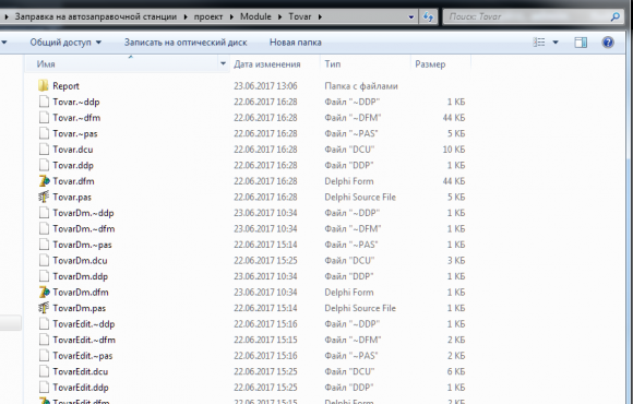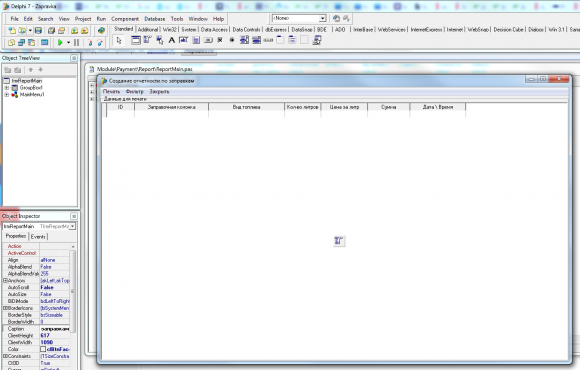 Для работы с таблицами базы данных проект в Delphi разделен на 3 модуля: Category, Tovar и Payment. В каждом модуле имеется одна основная форма, которая отображает сведения в таблице, форма для редактирования таблицы и модуль данных для получения доступа к таблице. Отчеты формируются по модулю Tovar и Payment с помощью QReport. Для этого в подмодуле Report модуля Payment можно делать выборку по заправочным колонкам, видам топлива и диапазону дат. А в модуле Tovar можно осуществить фильтрацию по наименованию и стоимости.